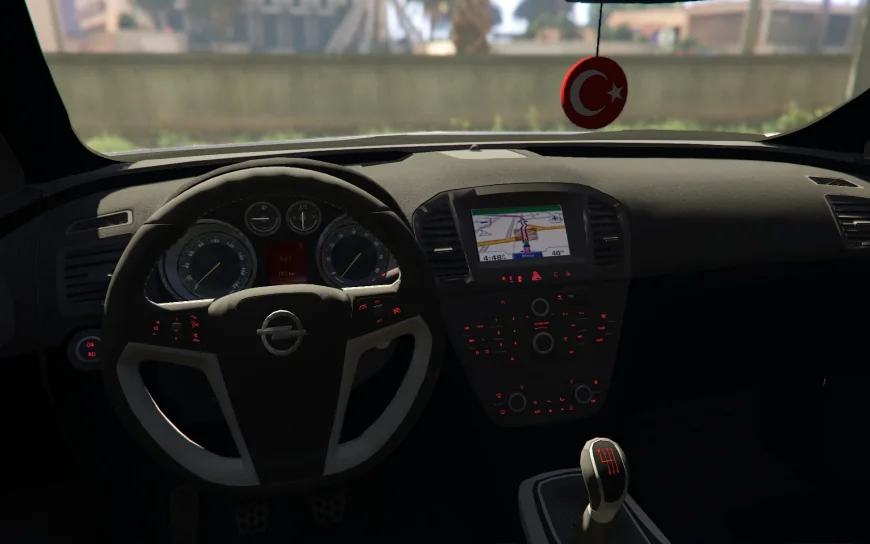 - aynada asılı olan Türk Bayrağı sallanıyor